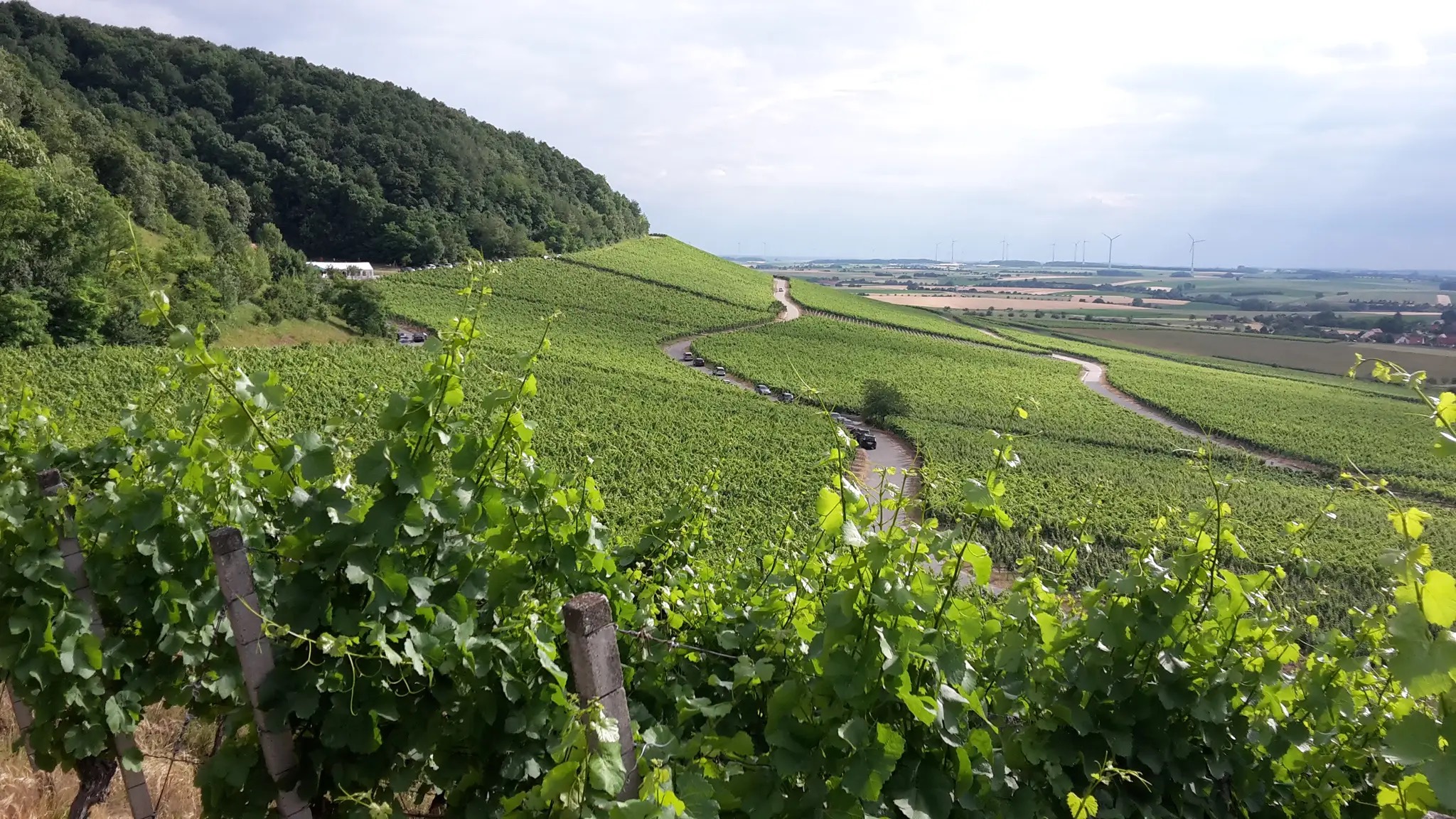 Während der Fahrt öffnen sich immer wieder schöne Ausblicke über das Ochsenfurter Gau und die umliegenden Rebhänge. Je näher man Bullenheim kommt, desto prägender wird die Weinlandschaft: Reben säumen den Weg, und der Blick schweift bis hinauf zum berühmten Bullenheimer Berg.