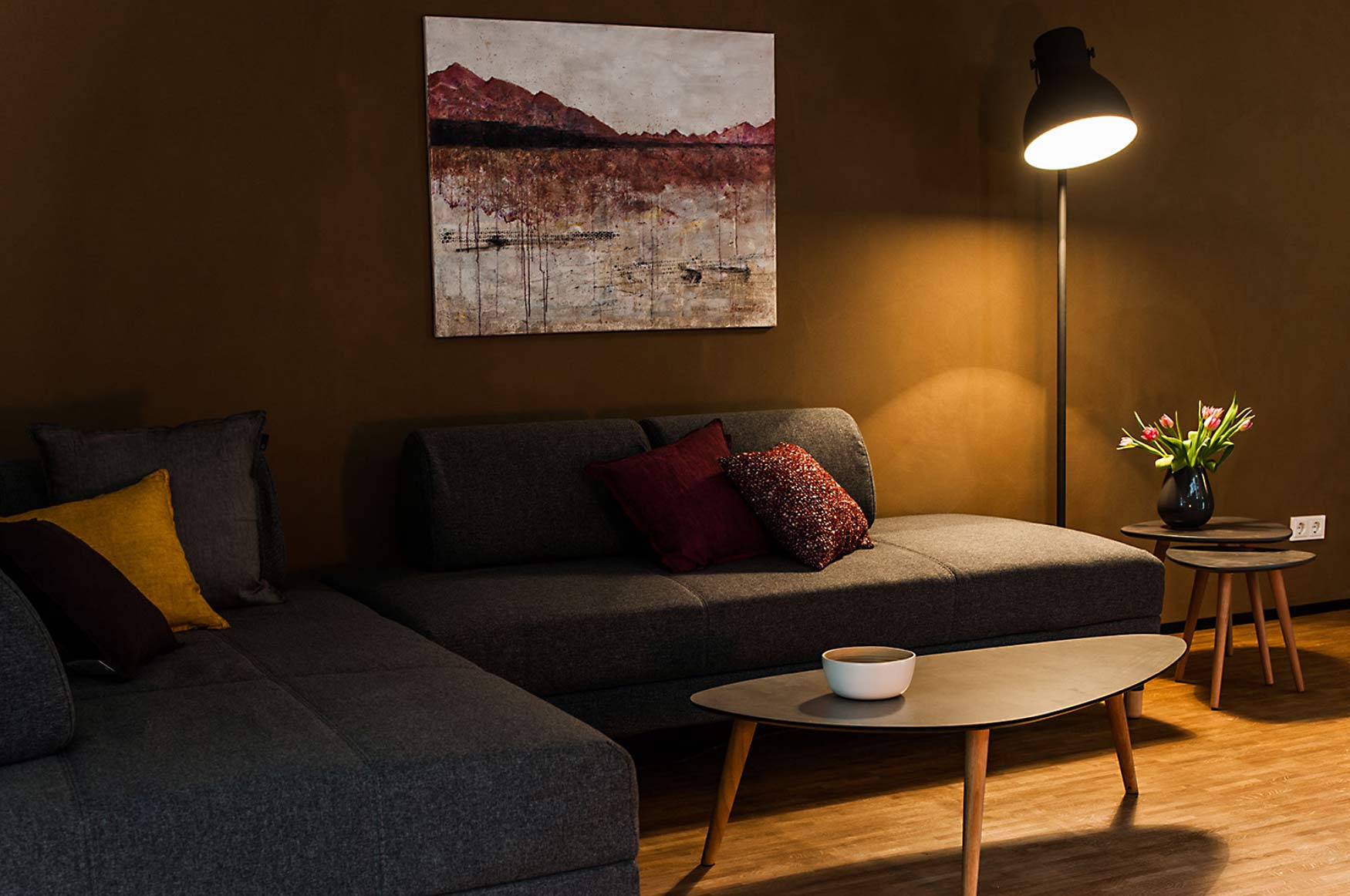 Zusätzlich steht ein separater Garten zur Verfügung, der Raum für Ruhe, Sonne und kleine Auszeiten im Grünen schafft. Hier lässt sich der Tag ganz entspannt ausklingen – umgeben von der besonderen Atmosphäre des Hofes, die auch draußen spürbar ist.